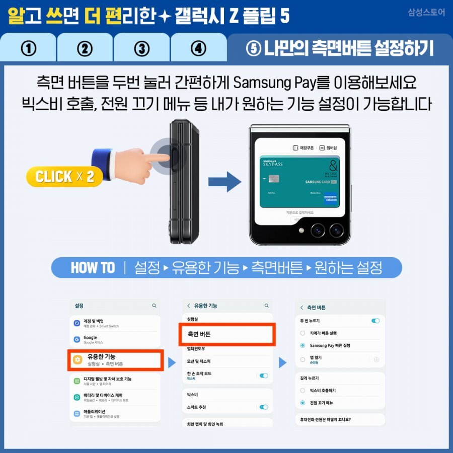 Z Flip5에서는 측면버튼도 다양한 기능을 설정하여 활용할 수 있다는 점 알고 계셨나요?