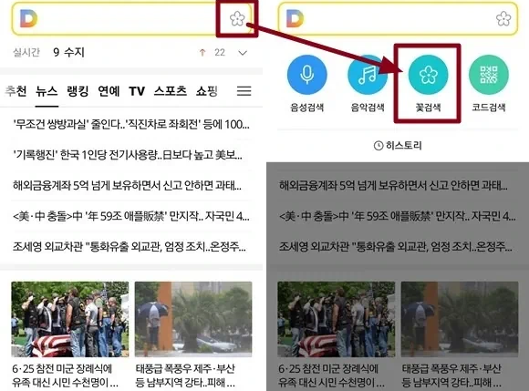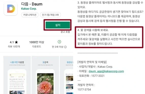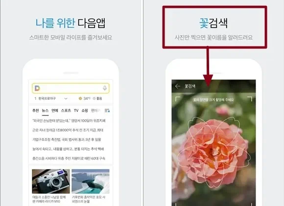 다음 앱에 꽃 검색 기능이 탑재되어 있습니다.