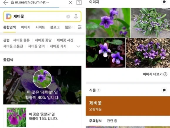가장 유명한 것이 다음 앱의 꽃 검색 기능입니다.