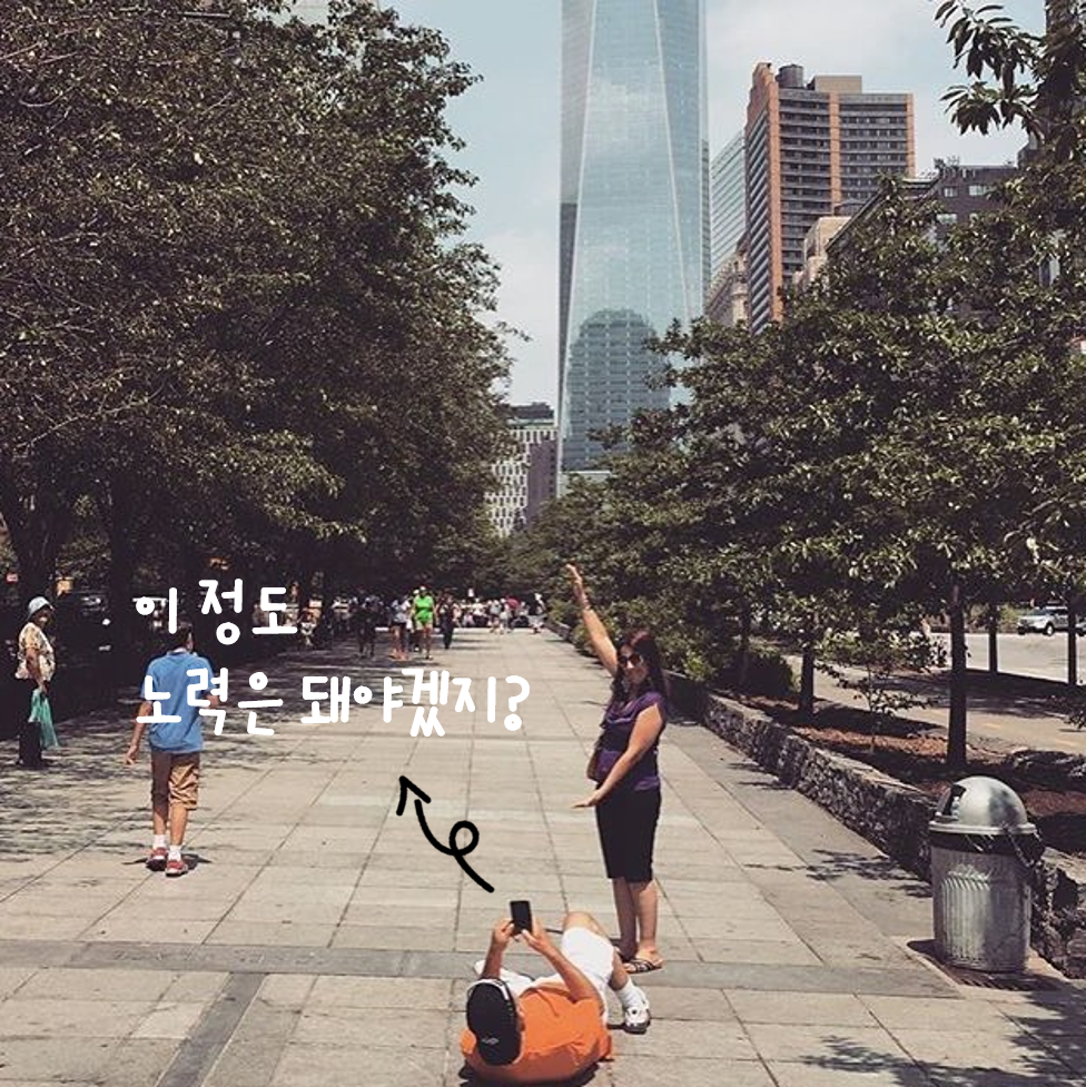 전신샷 찍을 때 다리가 길어 보이는 방법이다.