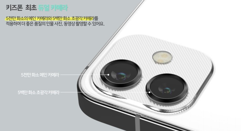대용량 배터리입니다. 무려 5000mAh의 대용량 배터리를 채택했으며 25w의 초고속 충전이 가능하게 만들었기 때문에 아이들과 먼 거리를 놀러 갈 때에도 충분히 오래 사용하실 수 있으며 배터리가 없어 아이와 연락이 안 되어서 부모님이 애간장을 태우실 일은 별로 없으실 거라 생각됩니다.