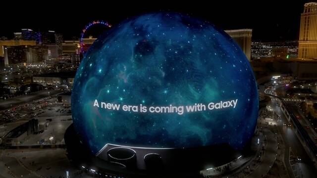 삼성전자가 오는 18일 오전 3시(한국시간) '삼성 갤럭시 언팩'을 열고 AI스마트폰으로 주목받고 있는 '갤럭시 S24'시리즈를 공개한다. 'CES 2024' 스피어에서 공개된 '갤럭시 언팩' 티징 영상의 한 장면. /삼성전자